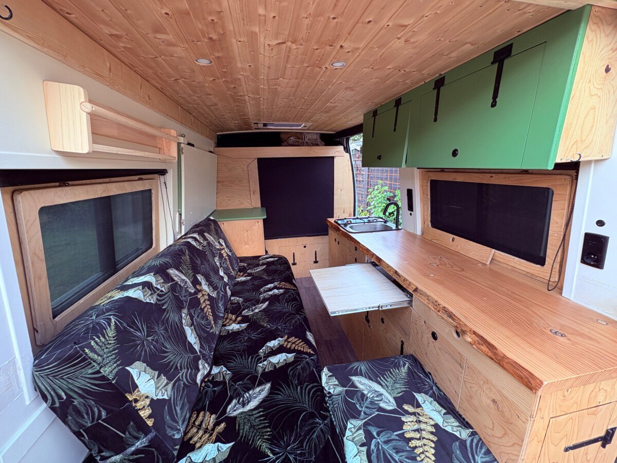 We bieden met veel plezier onze zelfgebouwde camperbus te koop aan. Deze nette en compacte bus is ideaal voor solo-reizigers, stellen of een gezin met een jong kind. We hebben er met veel plezier mee gereisd, maar door de komst van ons tweede kindje is hij voor ons net iets te klein geworden.